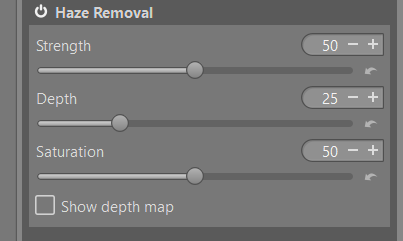Combine with Haze Removal (Detail tab) for stronger dehaze effects.